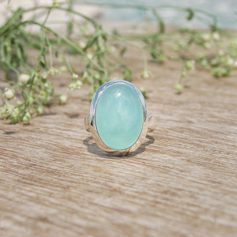 Product : Natural Aqua Chalcedony Handmade Silver Ring.