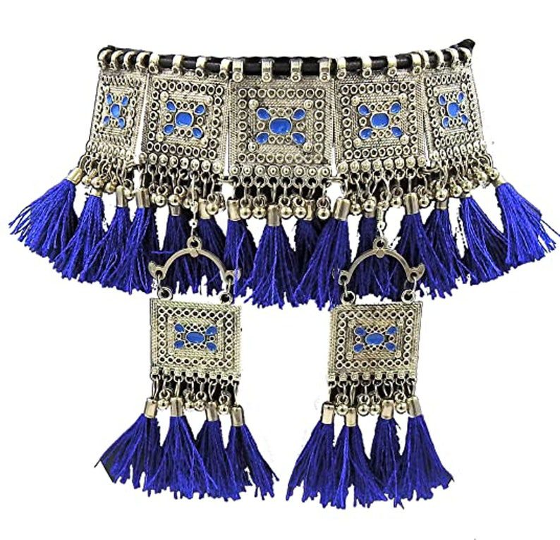 Afghani Jewelery,indian jewelry, choker necklace, oxidised choker,Thread Choker Necklace Set, Tribal, Handmade ,Wedding Necklace