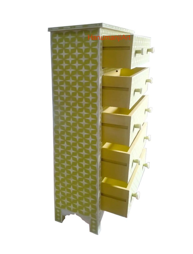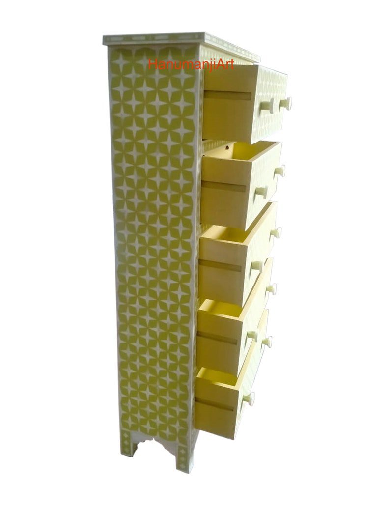 Handmade Bone Inlay Chest of 5 Drawers Yellow Color Home Decor Furniture