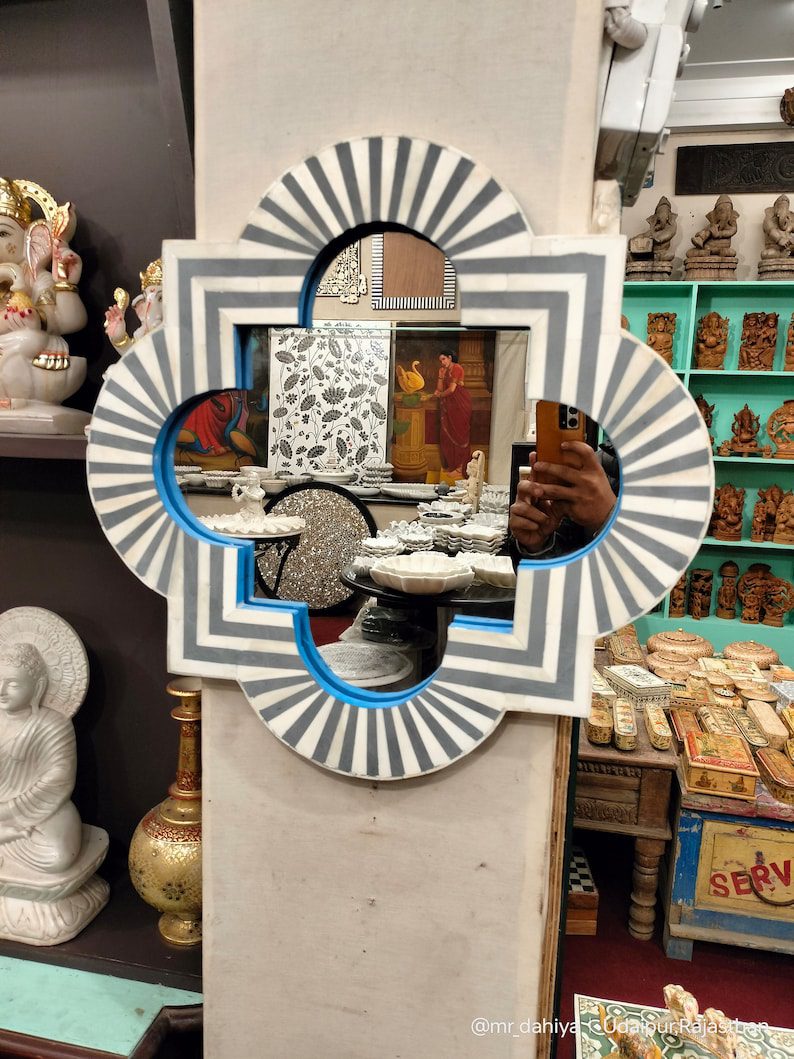About this Mirror: This elegant piece of Mirror gives an enchanting look to our livelihood. This mirror is inlaid with carved pieces of bone which give a more splendid look to our mirror.