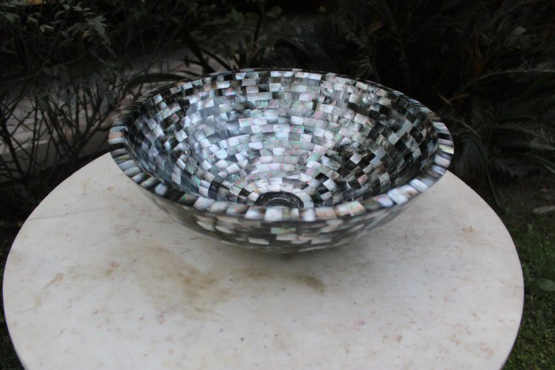 Black mother of pearl inlay wash basin /sink free shipping bowl, mother of pearl sink, handmade sink, Bathroom Décor, Gift item Piece.