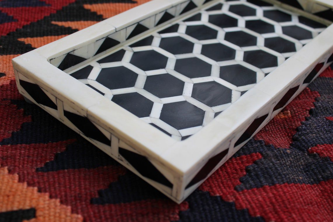 Bone Inlay Mini Tray – Geometric White