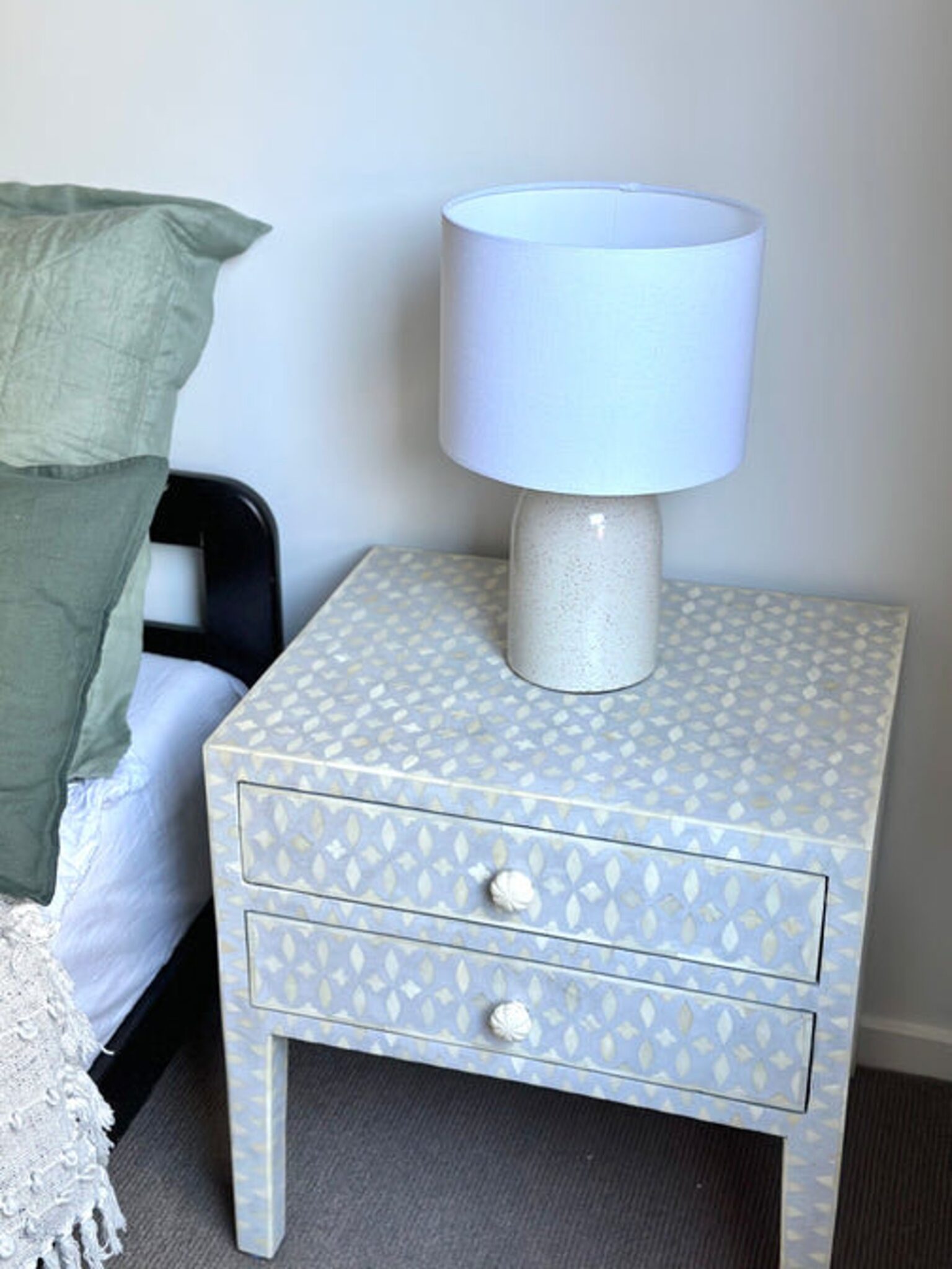 Our Gray/white Nightstand features 2 Drawer and a beautiful Geometric Design, highlighting a simplified and updated indian pattern. This piece of bedside table looks Elegant or stunning due to its beautiful design. This bedside include 2 drawer which give a enchanting look to bedside. Bedside can be used at many steps of our life. This bedside can be used for many purposes like we can use this product for keeping our valuable items in its elegant drawer. Bedside is very easy to carry and make it to go. anywhere bedside give a style to elevate your decor and give charming look.