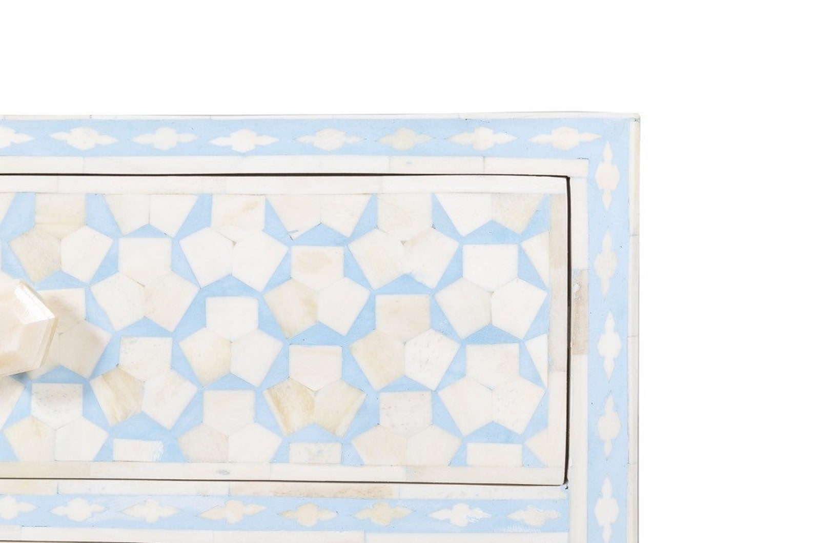 Our Blue Nightstand features 2 Drawer and a beautiful Moroccan Design, highlighting a simplified and updated indian pattern. This piece of bedside table looks Elegant or stunning due to its beautiful design. This bedside include 2 Drawer which give a enchanting look to bedside. Bedside can be used at many steps of our life. This bedside can be used for many purposes like we can use this product for keeping our valuable items in its elegant drawer. Bedside is very easy to carry and make it to go. anywhere bedside give a style to elevate your decor and give charming look.