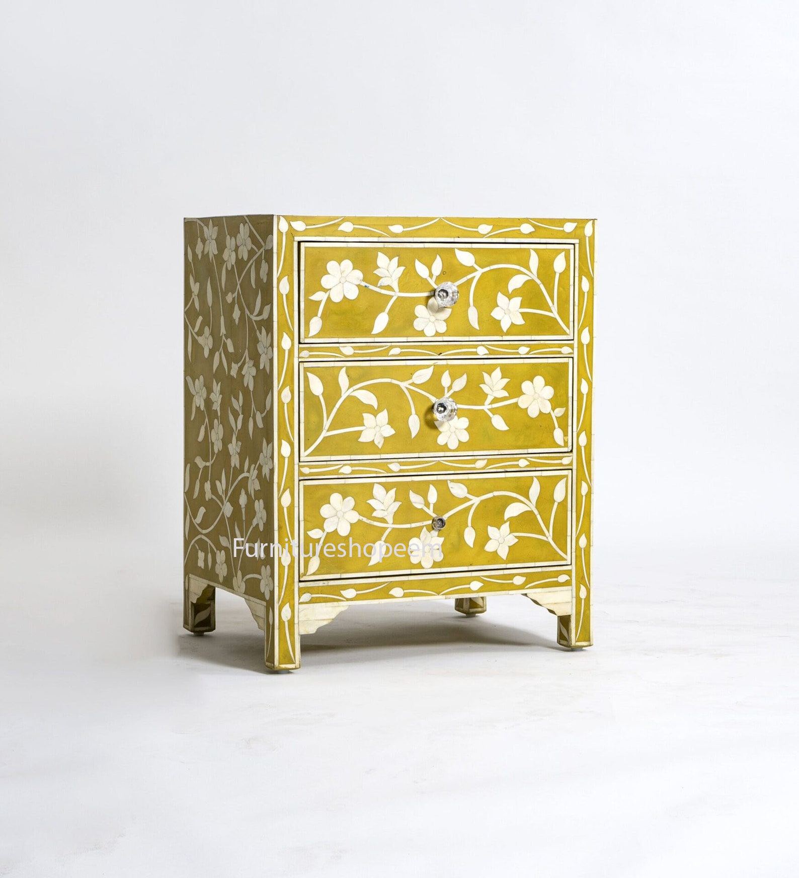 An inspired addition to the Hallway, living room, bedroom, this unique Cabinet is functional modern art. Hand-cut and individually formed, Teak bone inlays are hand arranged in a Attractive Beautiful Pattern with Color, this bunching Furniture is carefully hand crafted from bone and Wooden/MDF.