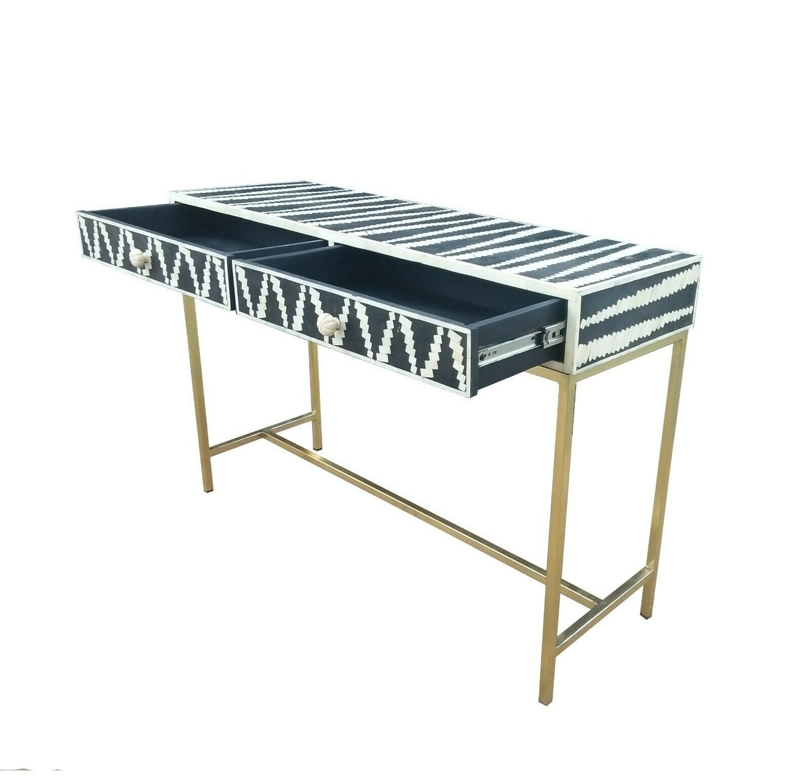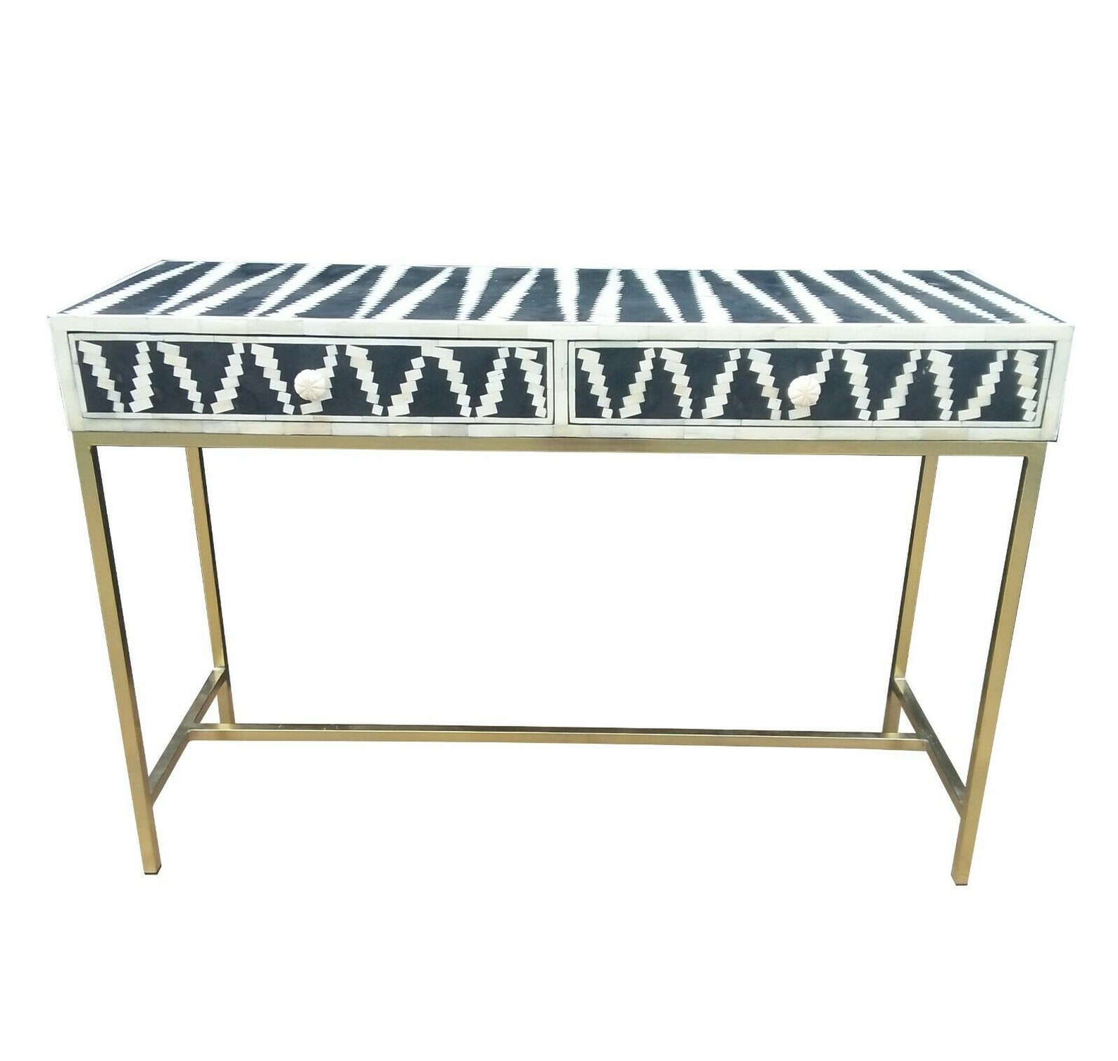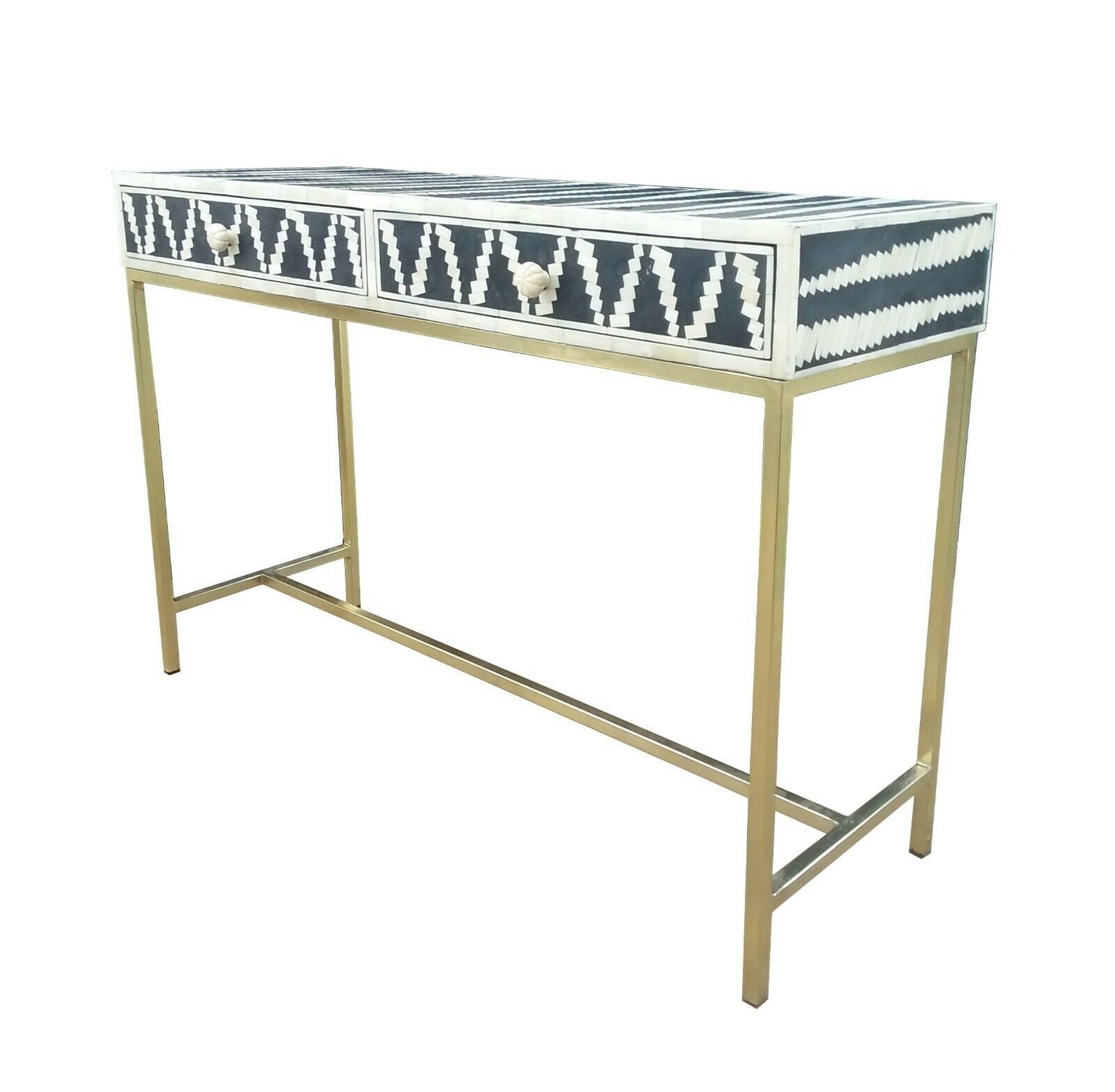 Marrakech is the place to stay for Bohemians and romantics. add a touch of royal elegance to your living room with this beautiful royal Black bone inlay moroccan dyed console table. this console table has been handicrafed by skilled artisans to bring you this stunning piece of furniture that radiates an everlasting impression.