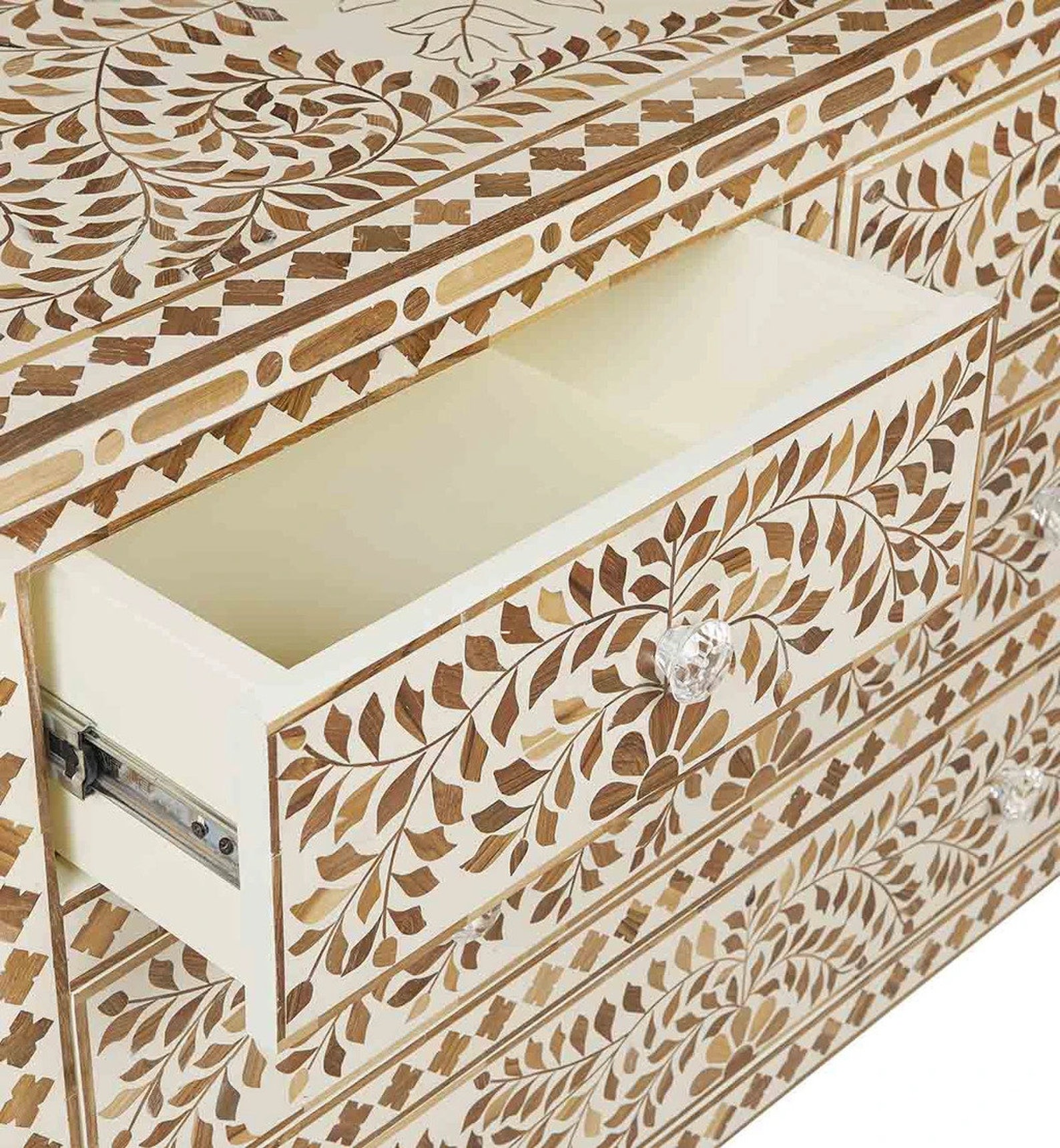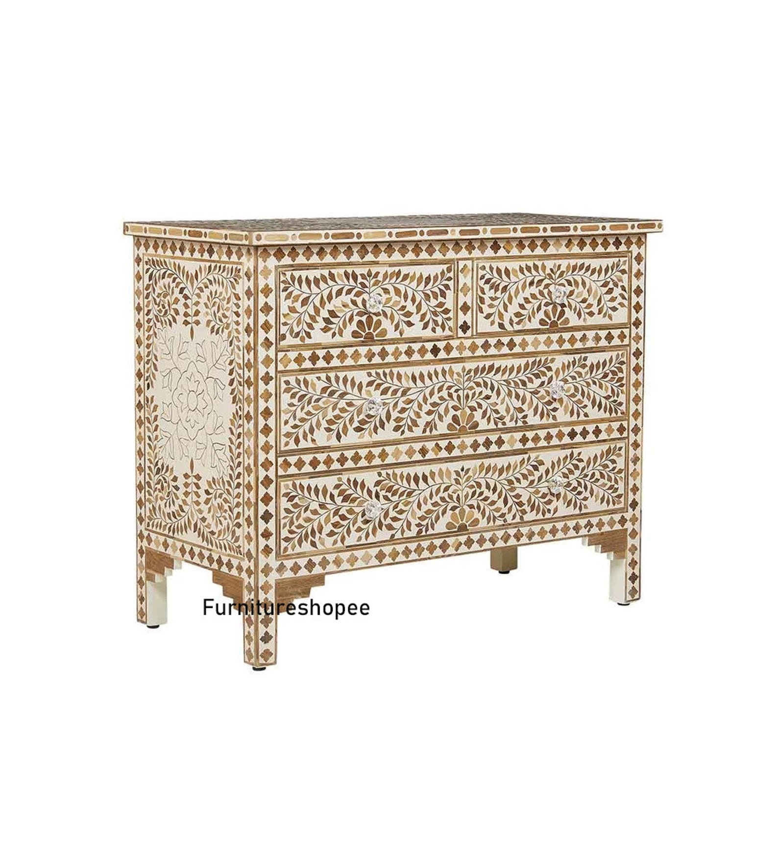 Indian handmade Bone Inlay White Floral Sideboard Buffets 3 Drawer