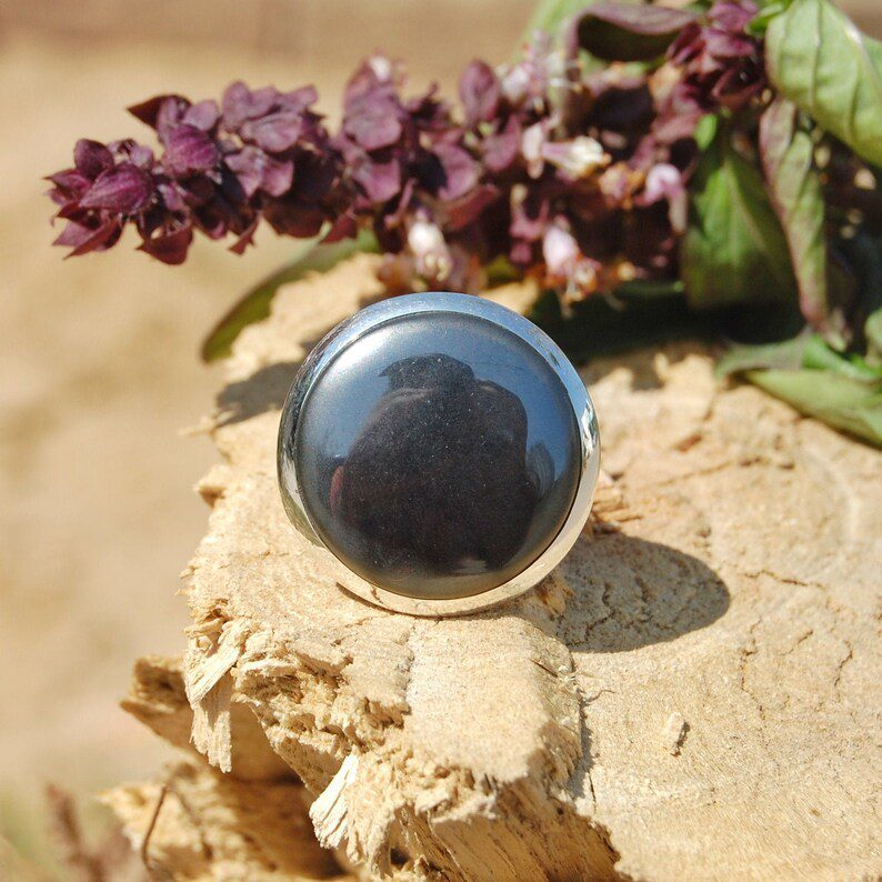 Product : Natural Hematite Round Cab Adjustable Ring.