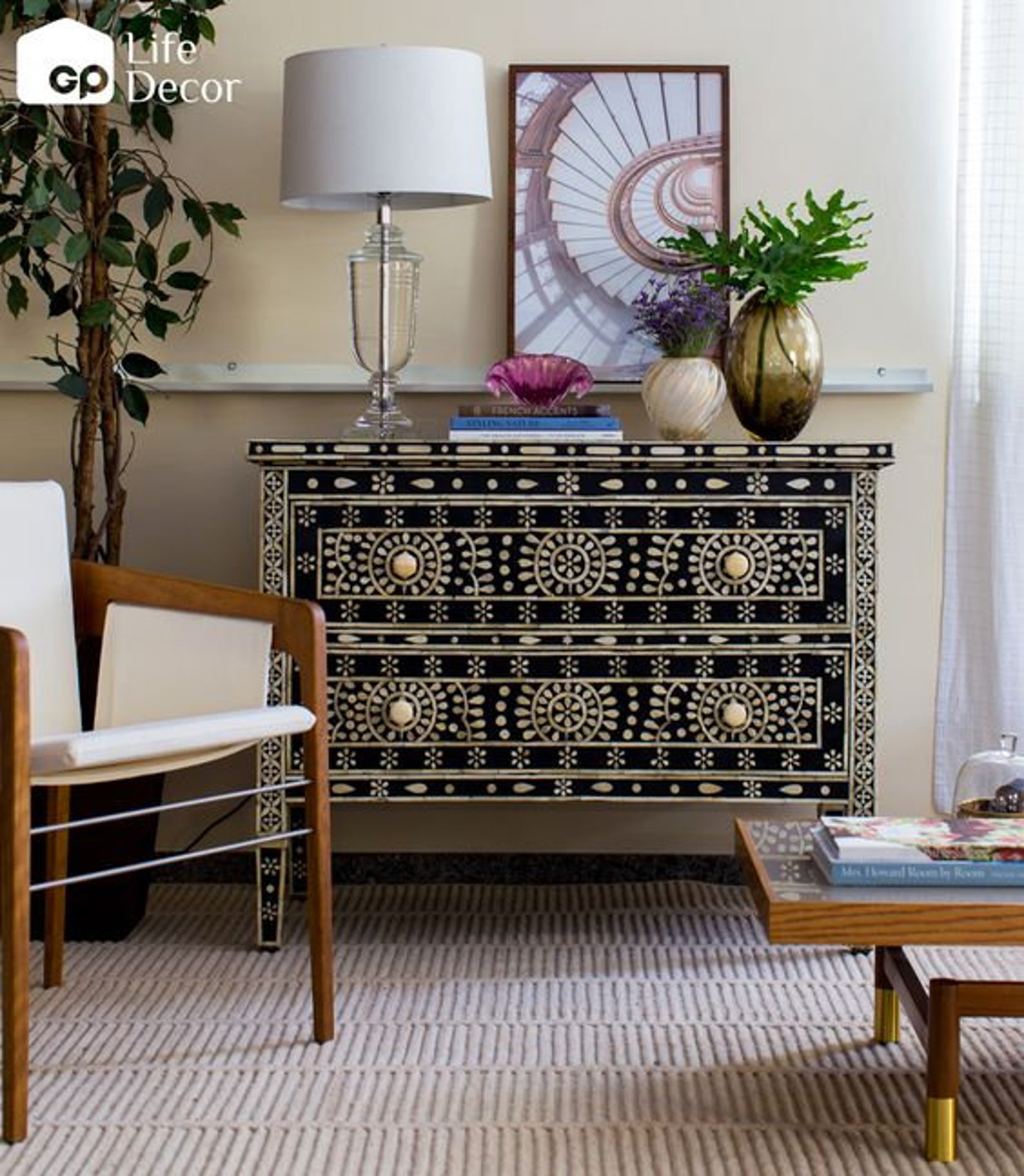 A stunning Natural Bone Inlay Floral Pattern of inlaid entirely by hand, the Bone inlay Sideboard is a head-turning piece to add to your living space.