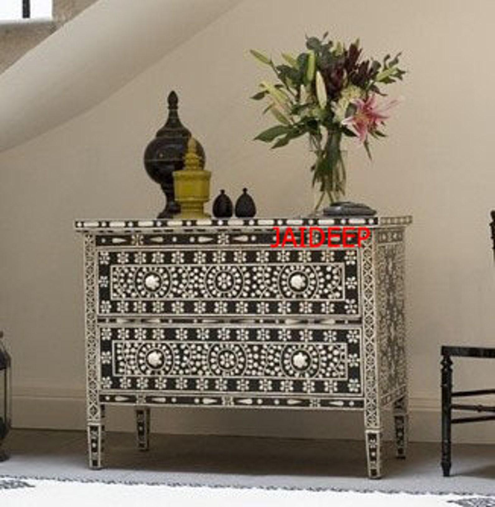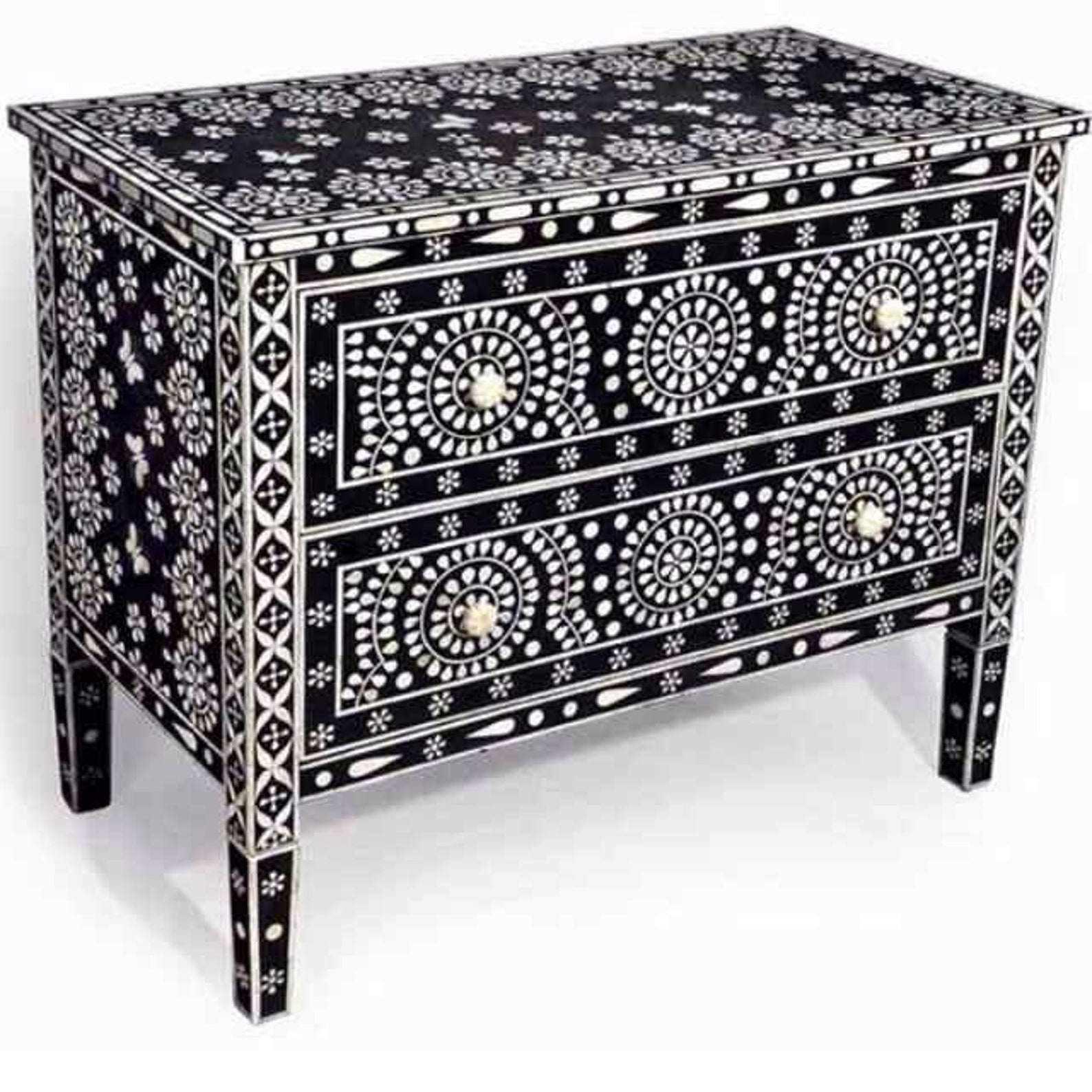 Handicraft Wood Inlaid Unique 2 Drawer Sideboard for Full storage.
