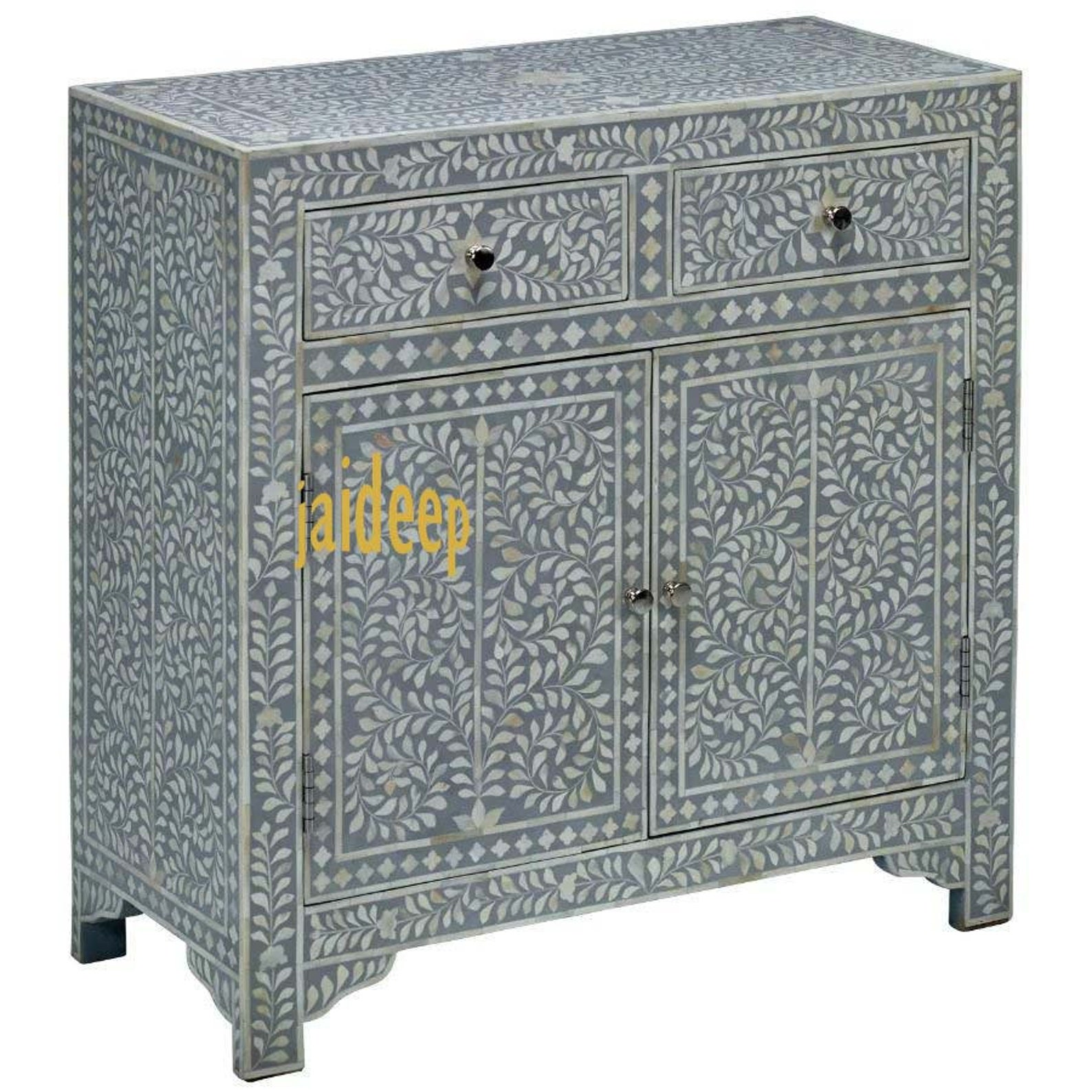 Indian Handmade Bone Inlay Green Sideboard Buffets 3 Drawer Bone Inlay Chest of Drawer 3 Dawer