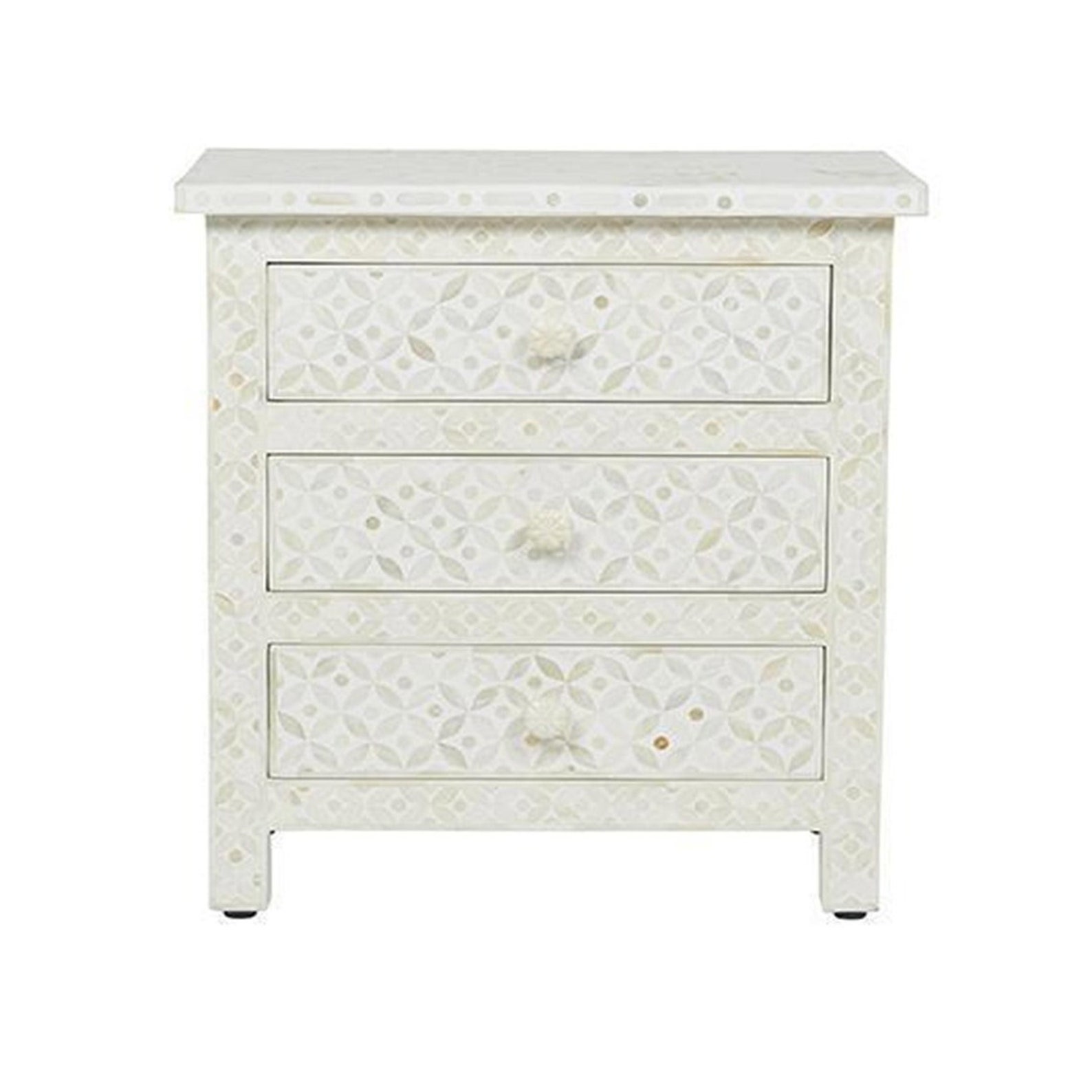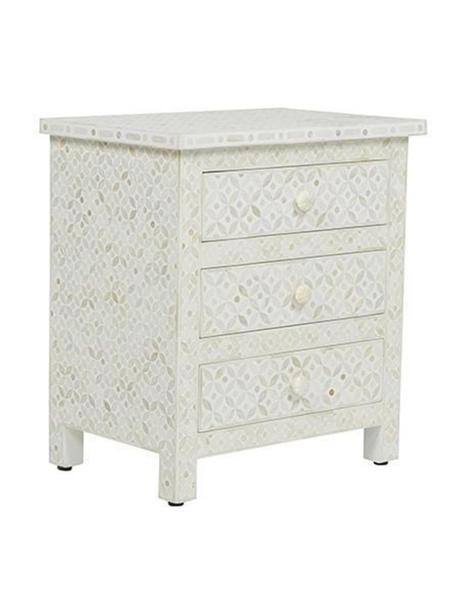 Be the first to review “Indian Handmade Bone Inlay White Geometric Bedside Table 3 Drawer Bone Inlay Table” Cancel reply
