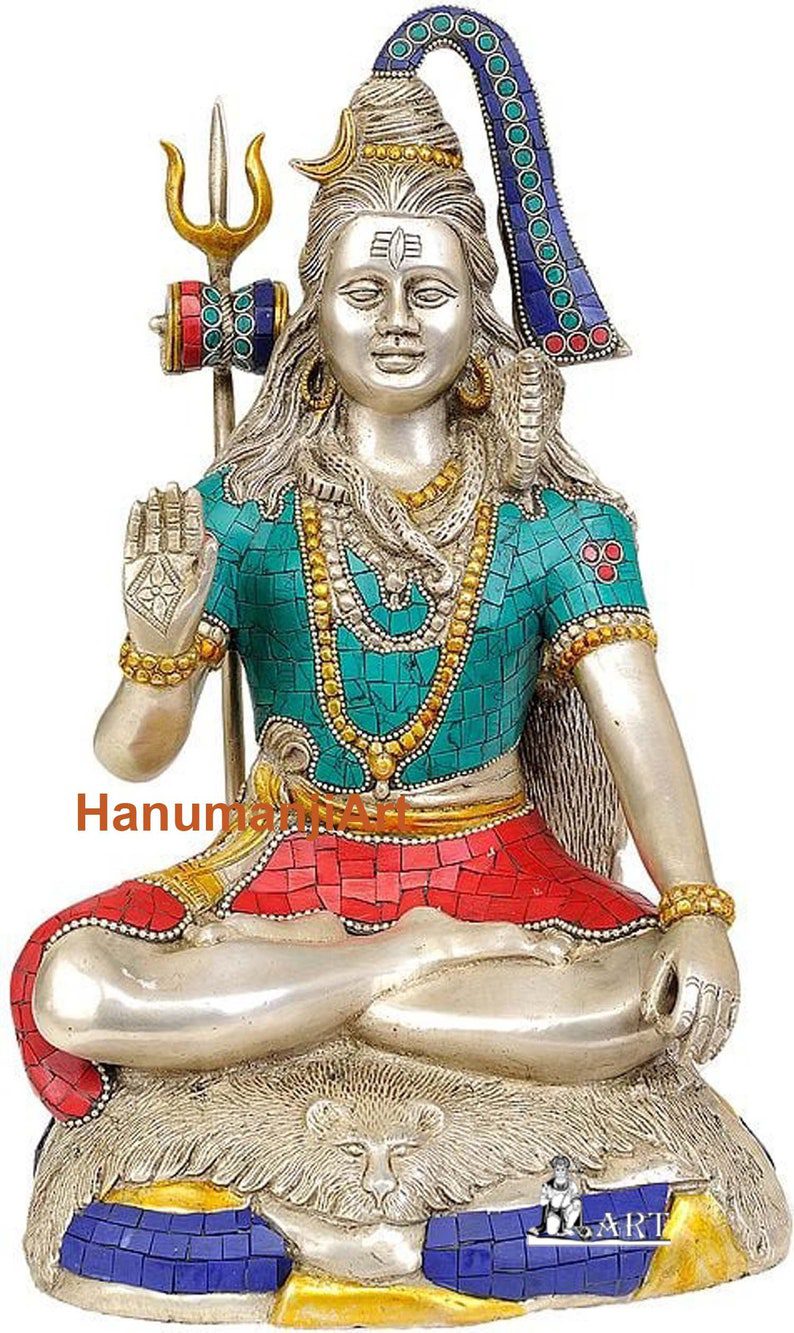 Lord Shiva Seated on a Mountain with Inlay Work Handmade