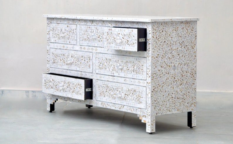 Be the first to review “Mother Of Pearl inlay 7 Drawer – Off White Floral” Cancel reply