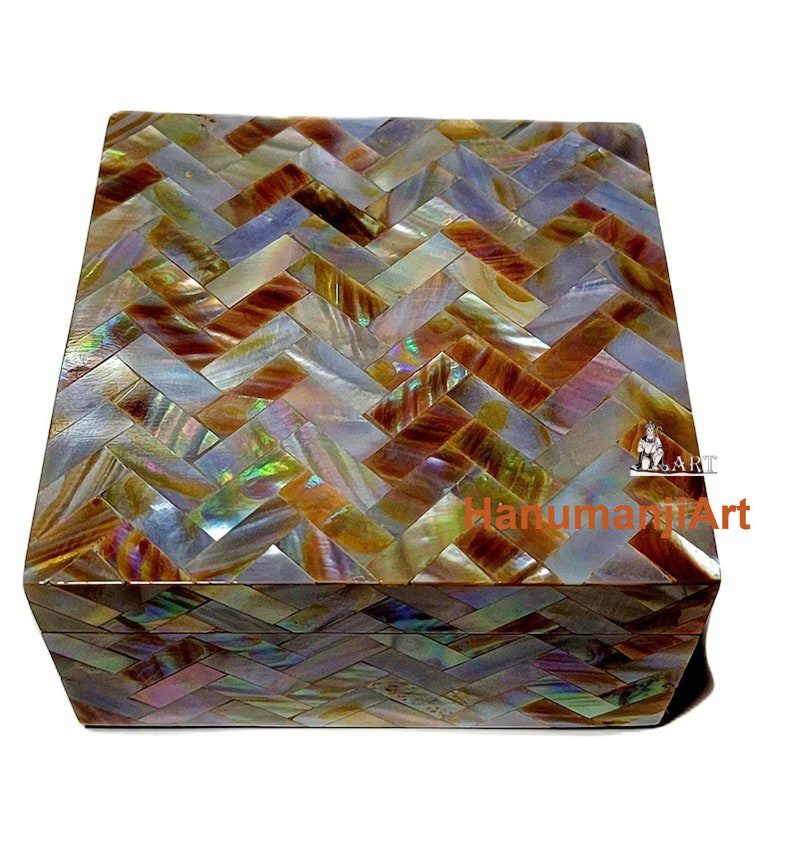 Mother of Pearl Inlay Handcrafted Design Jewelry Box Decor Box storage box Antique Finish