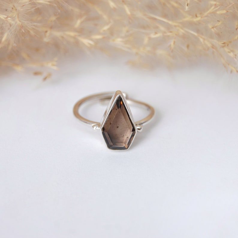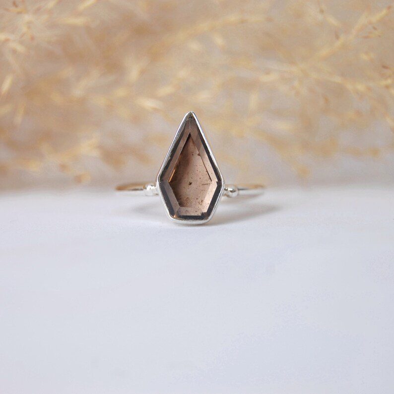 Product : Beautiful Smoky Quartz Handcrafted Kite Ring.