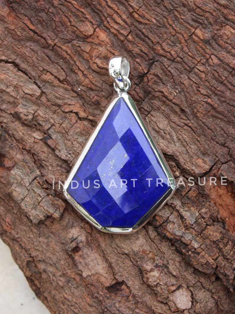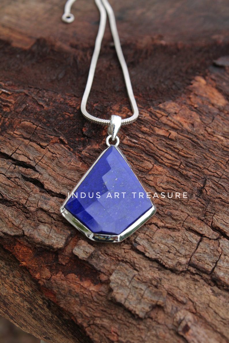 Product : Real Lapis Lazuli Huge Stone Pendant, Blue Stone Pendant, Solid 925 Sterling Silver Pendant, September Birthstone Jewelry, Anniversary Gift for Her, Statement Pendant.