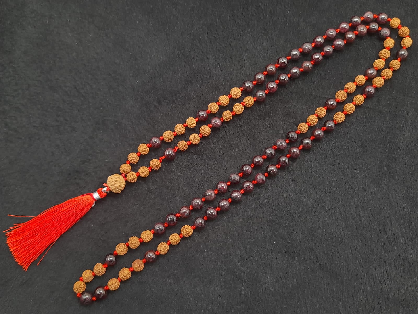 Why Choose Us? Our Rudraksh With Garnet Jap Malas are crafted with high-quality gemstones and sacred Rudraksha seeds to support your spiritual journey. Whether used for meditation, grounding, or as a statement accessory, this mala is designed to promote passion, vitality, and peace.