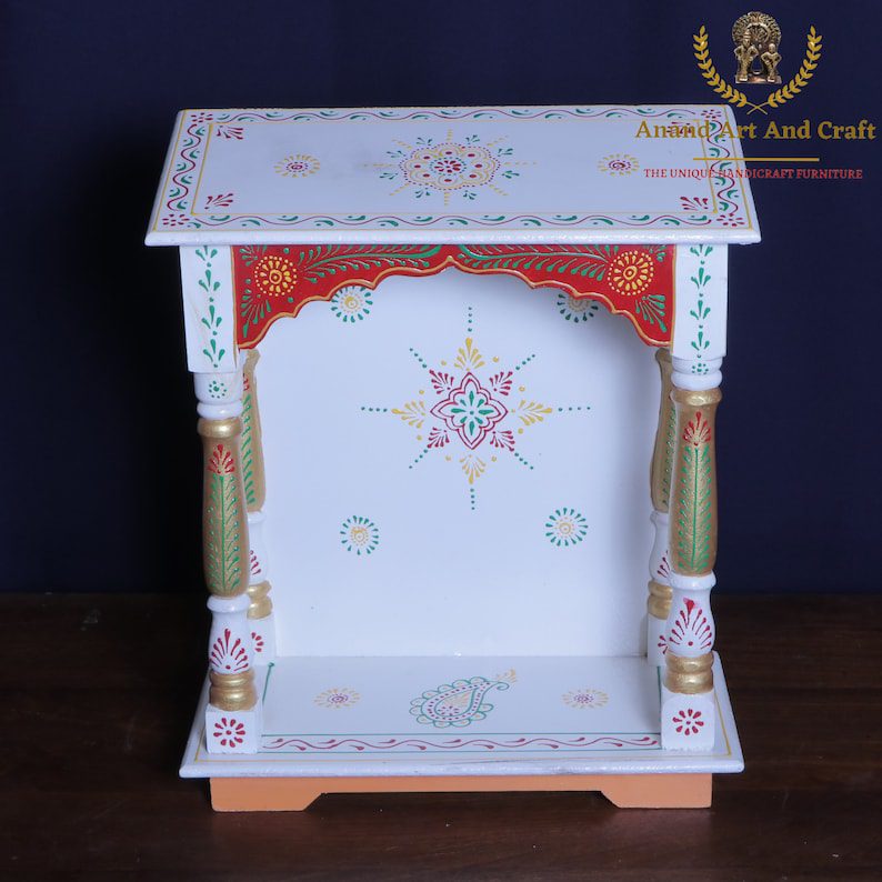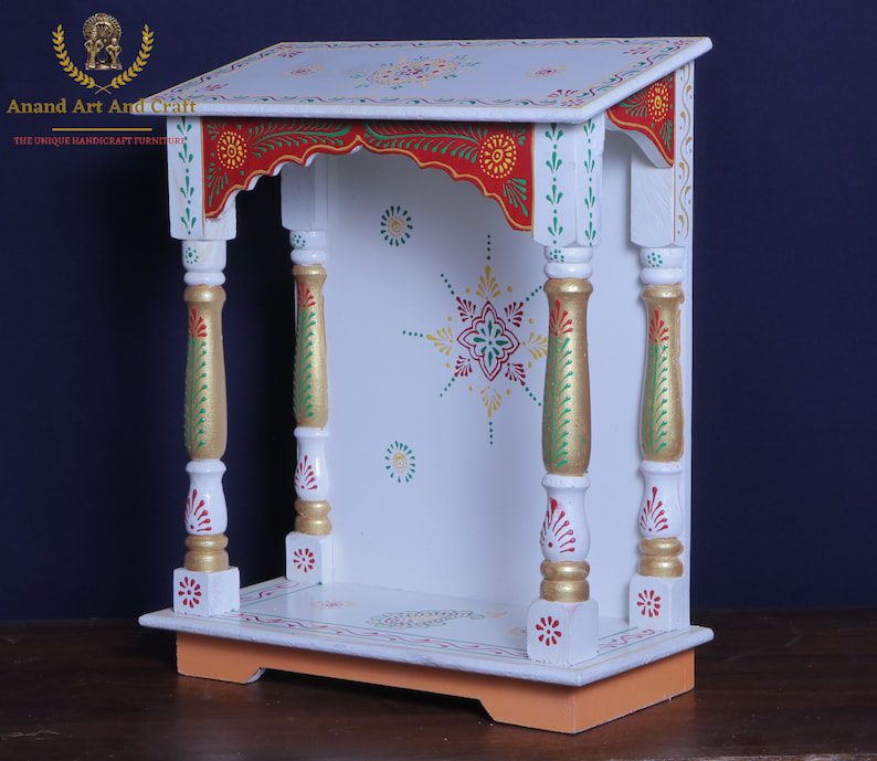 * Wood Temple Mandir Handcrafted Hindu Pooja Ghar Mandap For Worship hand Painted Home
