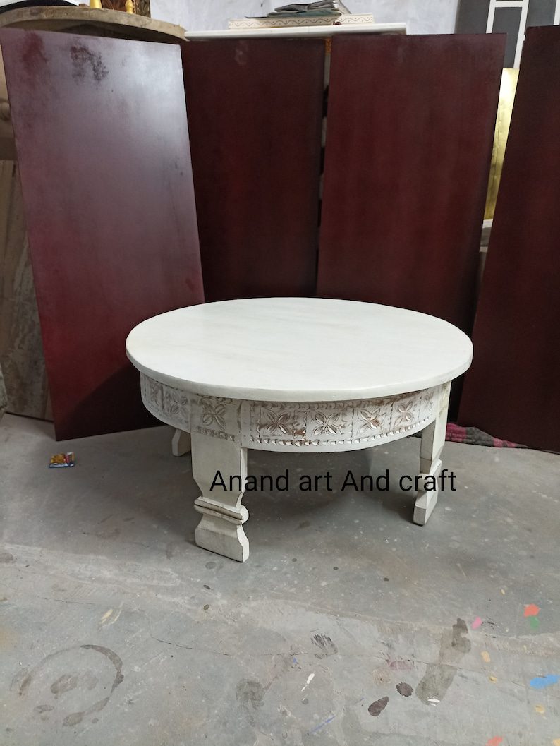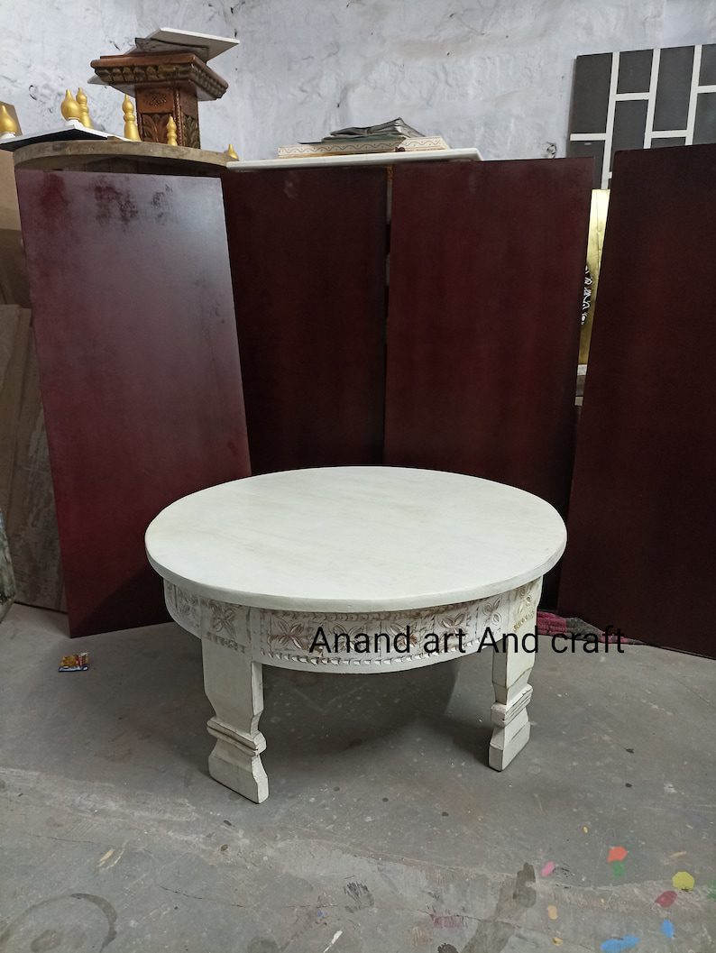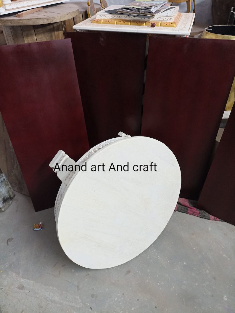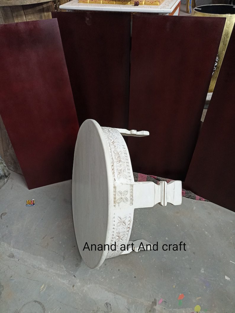 *Wooden Coffee Table Hand Made Craved Round Indian Grinder Table Chakki Table Beautifully Table Home Decor Handicraft Art